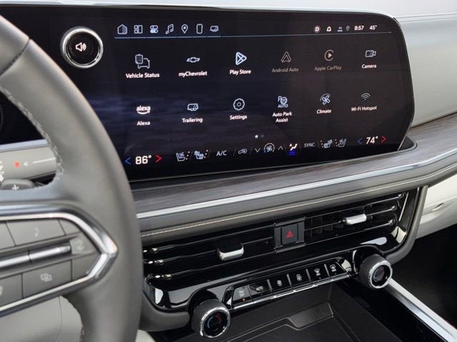 Radiant Red Tintcoat 2025 Chevrolet Tahoe Premier 4WD 10-Speed Automatic with Overdrive EcoTec3 6.2L V8 Tahoe Premier, 4D Sport Utility, EcoTec3 6.2L V8, 10-Speed Automatic with Overdrive, 4WD, Radiant Red Tintcoat, Gray Leather, 15 Diagonal Multi-Color Head-Up Display, 1st & 2nd Row Color-Keyed Carpeted Floor Mats, 1st & 2nd Rows Premium Floor Liners (LPO), 2-Speed Active Electronic AutoTrac Transfer Case, 3-Spoke Wrapped Steering Wheel, 3rd Row 60/40 Power-Folding Split-Bench Seat, 3rd Row All-Weather Floor Liners (LPO), Advanced Security Package, Advanced Trailering Package, All-Weather Cargo Mat (LPO), Auto-Dimming Inside Rear-View Mirror, AutoSense Hands-Free Power Liftgate, Blind Zone Steering Assist w/Trailering, Bose 10-Speaker Centerpoint Surround Audio Sys Ft, Bright Front & Rear Door Sill Plates, Chrome Door Handles w/Body-Color Strip, Chrome Mirror Caps, Color-Keyed Carpeting Floor Covering, Dual Exhaust System, Dual-Pane Power Panoramic Sunroof, Floor Console, Front LED Fog Lamps, Front Pedestrian & Bicyclist Braking, Frontal Driver & Outboard Passenger Airbags, Glass Breakage Sensor, Heated 2nd Row Outboard Seats, Heated Steering Wheel, Hill Descent Control, Hitch View w/Pan/Zoom Image Adjustment, Inside Rearview Auto-Dimming Rear Camera Mirror, Integrated Trailer Brake Controller, LED Headlamps w/LED Daytime Running Lamps, LED Tail Lamps, Max Trailering Package, Memory Settings, Outside Heated Power-Adjustable Mirrors, Power Release 2nd Row Bucket Seats, Power Tilt & Telescopic Steering Column, Preferred Equipment Group 1LZ, Premium Liner Protection Package (LPO), Rear Power Liftgate, Rear Seat Media System, Remote Start, SiriusXM w/360L Trial Subscription, Smart Trailer Integration Indicator, Technology & Entertainment Package, Technology Package, Theft-Deterrent Alarm System, Universal Home Remote, Vehicle Inclination Sensor, Vehicle Interior Movement Sensor, Wireless Phone Charging.